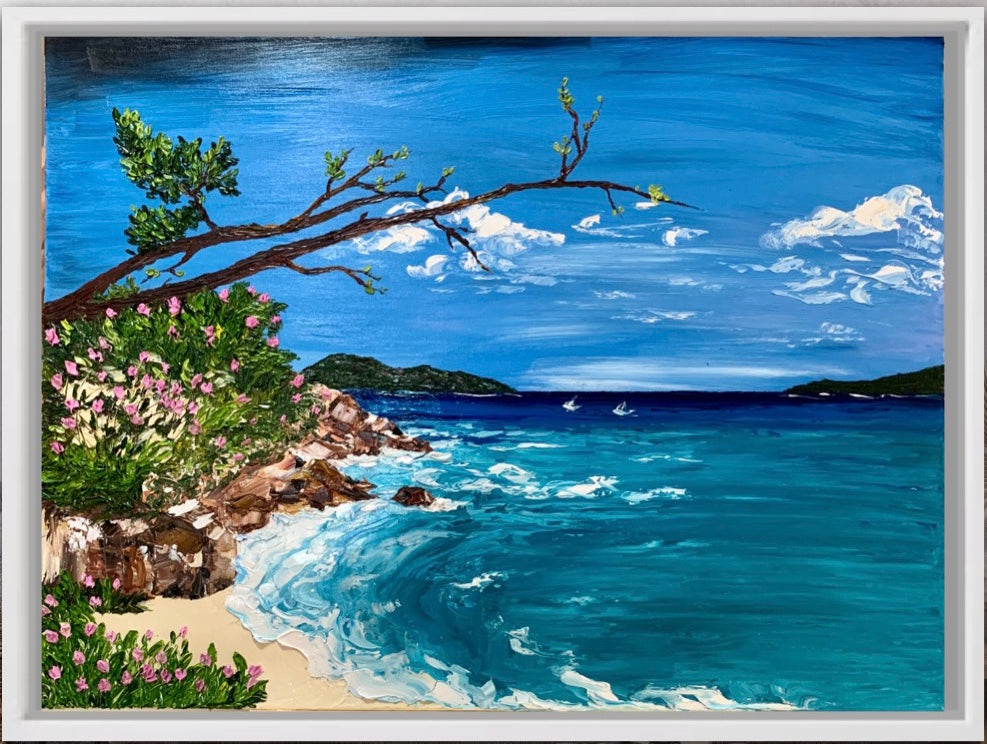 This textured artwork is made using impasto painting using palette knife and is framed in white floater frame , ready to hang.